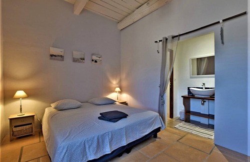 The swimming pool (12 x 6), located behind the stables and the old water tank, is hidden from view and accessible at all times. It is shared with potential customers of the guest room (capacity 2 to 4 people), located on the ground floor of the Mas, opposite the gîte.