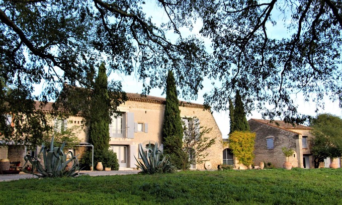 For a weekend, a week (minimum in high season) or more ... want to spend a stay in the countryside, with family and / or friends? And without sacrificing your comfort? You found ! Between Camargue and Cévennes, north of Sommières, Mas Bas Orthoux awaits you. On the menu: the charm of a large new gite in an old, completely renovated 16th century farmhouse. A very large swimming pool surrounded by 3 hectares of nature. The beauty and calm of the countryside, overlooking a river, facing the Pic Saint-Loup. The simple happiness of a life on the farm, surrounded by horses ... This is the guaranteed change of scenery that we offer you for your tribal vacation (up to 8-10 people) ...