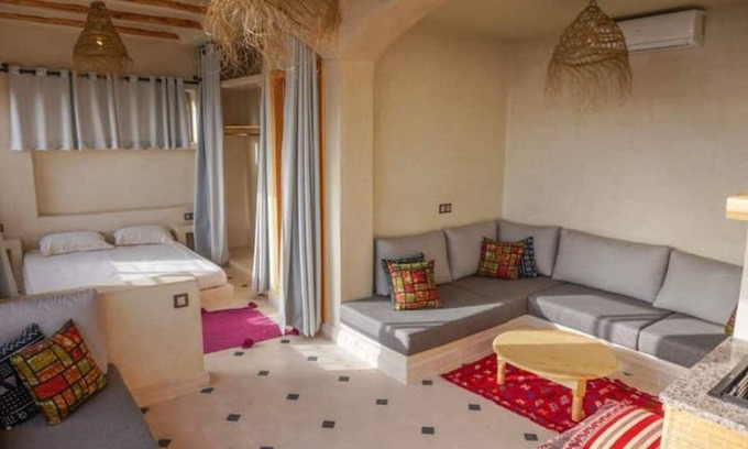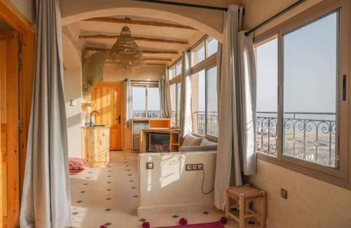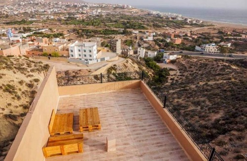 Very nice new apartment, sea view and village from the inside of the apartment, 5 min from the beautiful Tamraght beach, well equipped and furnished with high-speed wifi.
