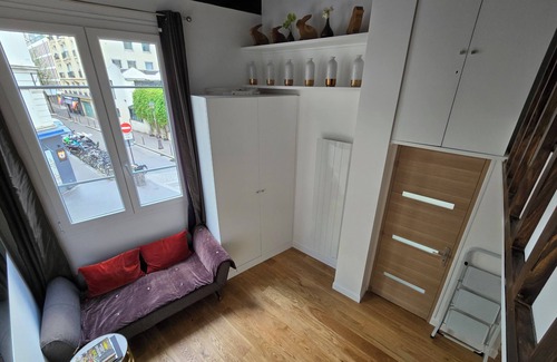This small cozy nest of 25 m², is ideally located in the heart of the historic district of the Marais, in a very lively and busy area, day and night during the summer. It is located in the immediate vicinity of the famous places of the town hall, and Vosges.