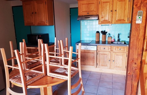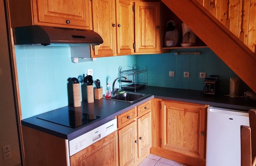 Fully equipped kitchen with induction hob, dishwasher, refrigerator, filter and tassimo coffee makers, kettle, toaster, fryer, sandwich maker, steam cooker.