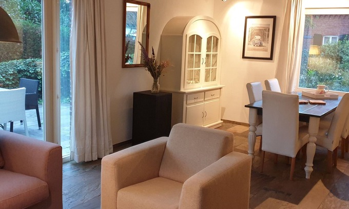 Rurally located in the outskirts of 't Ven in Venlo, a cosy, very spacious and fully furnished holiday home. On the ground floor a spacious living/dining room with a separate kitchen. Upstairs there is a large bedroom and spacious bathroom with bath and separate shower. You have a large private terrace, your own garden and private parking at the back. Free WiFi, BBQ facilities.