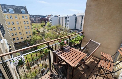 Modern, spacious 2-room apartment and a lovely sunny balcony, located in central Copenhagen. The location is right next to the central station, the Copenhagen metro system, and within 5 minutes walking distance from Tivoli, The Main Shopping Street, the Central Square, the lakes, and the vibrant meatpacking district. In other words, this is the prime location for your stay in Copenhagen in this cozy apartment. Here, you will experience true "Danish Hygge" The apartment in itself is bright, with beautiful classical details. It consists of an open-space kitchen/living room with a wide balcony, and a spacious bedroom. Additionally, the apartment consists of a modern kitchen, big bathroom, a great bedroom completely quiet and the most relaxing and cosy balcony for you to enjoy after a day in the city. It is also perfect for remote working with a great Wifi-connection.