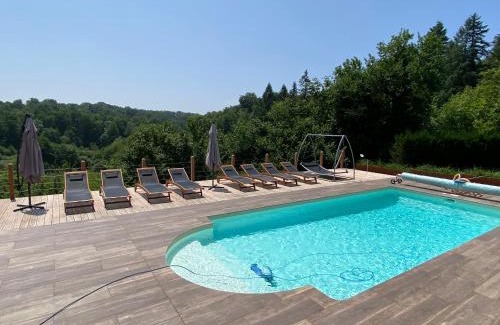Featuring garden views, Veyrinas 43 in Saint-Yrieix-la-Perche features accommodations, pool with a view, a garden, a bar, and a shared lounge. The property is around 31 miles from ESTER Limoges Technopole, 31 miles from Zénith Limoges Métropole, and 7.9 miles from Jumilhac Castle. There's a sun terrace and guests can make use of free Wifi, free private parking, and an electric vehicle charging station. At the bed and breakfast, each unit has a wardrobe. At the bed and breakfast, units include a private bathroom and bed linen. There is an on-site coffee shop. You can play billiards and darts at the bed and breakfast, and the area is popular for cycling and walking tours. An indoor play area is also available for guests at Veyrinas 43. Hautefort Castle is 21 miles from the accommodation, while Montbrun Castle is 24 miles from the property. Limoges – Bellegarde Airport is 33 miles away.