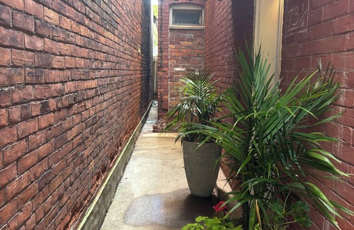 This two bedrooms unit is located at the front on the left side of the property, boasting two queen-size beds, nightstands, and lamps, along with a workspace. While the bathroom retains its original claw-foot tub, adding a touch of history to your stay. Enjoy access to the upper deck, a great spot to unwind and savor the tranquil surroundings.