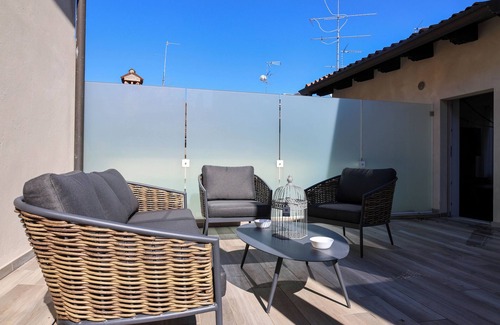 But the highlight of this holiday home is the wonderful furnished terrace. As you step out, you will be greeted by a breathtaking view of the bustling heart of Desenzano del Garda. Here, among lush plants and comfortable outdoor furniture, you can enjoy moments of pure relaxation and contemplation, admiring the colors of the sunset or sipping a good glass of wine under the stars.