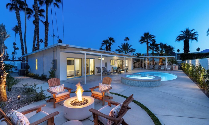 Nestled in the highly sought-after Sunmor Estate neighborhood, Victor Victoria Hideaway seamlessly blends mid-century modern charm with contemporary luxury. This Palm Springs retreat offers a stylish escape with bright, open interiors, curated furnishings, and a resort-style backyard designed for ultimate relaxation and entertainment. Beds: K,K,Q.
