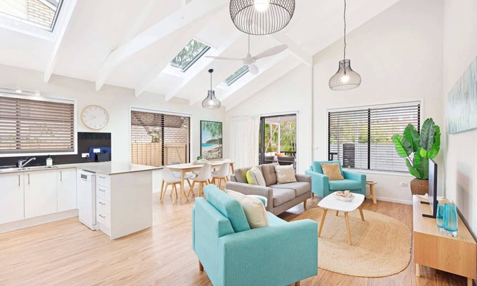 Step inside and discover a thoughtfully designed space perfect for your family getaway. This house offers three comfortable bedrooms: the main bedroom features a queen bed and a private ensuite, while the second bedroom also offers a queen bed, and the third has single beds, ideal for kids. Enjoy a spacious open-plan living area connected to a modern kitchen equipped with essential appliances. Step outside onto the north-facing entertainment deck or utilise the BBQ. This property also provides a secure car space. Please note that pets are allowed, with restrictions on size.