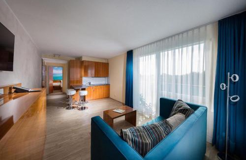 Victory Gästehaus is just 328 feet from the Therme Erding Spa. The accommodations offers modern studios and apartments with a kitchenette, sofa beds and a foldaway bed. The modern and bright apartments can accommodate up to 4 people. The balcony also offers a view of nature. The spacious studios at the Victory Gästehaus offer comfort for families with up to 5 people. They feature modern furniture and a separate sleeping area. Breakfast is served in the same building at the Victory Gästehaus Therme Erding. Guests can use the restaurant and bar and in the Hotel Victory Therme Erding, located just 328 feet. Munich Airport is approximately 9.3 mi away.