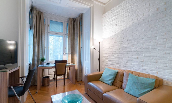 This convenient 40 sqm apartment with working area is located in the heart of Vienna, just steps away from the Vienna City Hall. The apartment is in a beautiful old building with high ceilings and original features. It is fully furnished and equipped with everything you need for a comfortable stay, including a fully equipped kitchen, a spacious living room, and a private bathroom with shower.