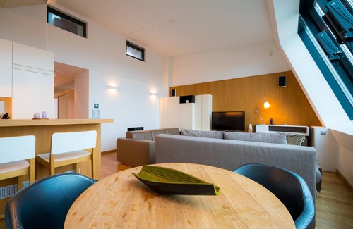 All 13 premium apartments have the beautiful high ceilings typical of Vienna’s old buildings, a smart online key system, fully air-conditioned rooms, and practical work areas. Whether you’re looking for a cozy business apartment, something more spacious with a private balcony, or an extravagant accommodation – you will find your ideal temporary home here. The penthouses, for instance, have a large roof terrace and huge windows. From there, you have an impressive view over Vienna and you can overlook the Vienna City Hall or the Votivkirche.