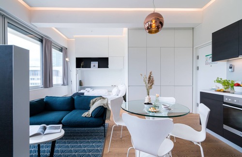 Welcome to the iconic Philips Haus at Wienerberg – your stylish serviced apartment in Vienna!