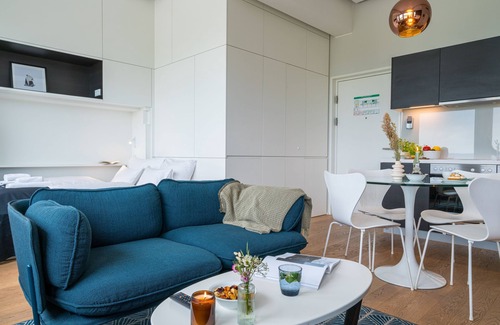 The apartment is thoughtfully furnished and move-in ready: it features a fully equipped kitchen with modern appliances, a bright living and dining area, a comfortable double bed, a stylish bathroom with a walk-in shower, high-speed Wi-Fi, a Smart TV, and a dedicated workspace. Weekly cleaning, fresh towels, and bed linens are included in your stay.