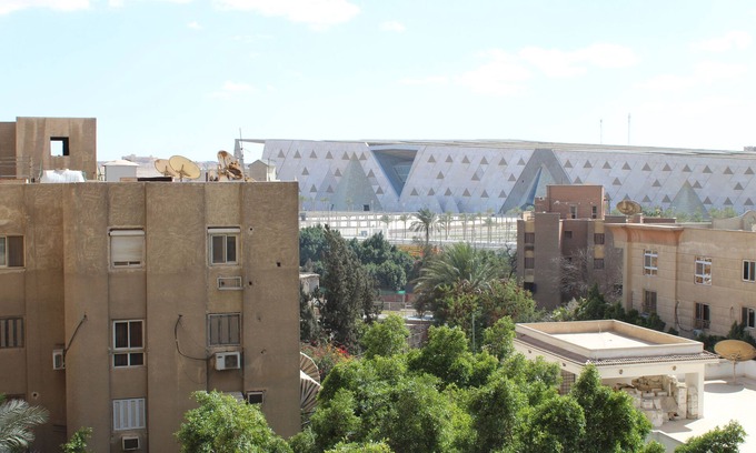 Great views of the Great Pyramids and Grand Egyptian Museum from your apartment in the heart of Giza & all tourist attractions (Step pyramid; Sakara, Dahshore). Your Family/Group will be very comfortable in this spacious, newly remodeled, apartment located in a very safe neighbourhood. A 10-minute walk to the Grand Egyptian musueum and 5-minute drive (1.7 km) to the great Pyramids of Giza. Two huge bedrooms and two full bathrooms. A/C & fans in all rooms, high speed internet, TV, FULLY stocked kitchen, (with coffee, tea, spices, ..), dedicated workspace, free parking, and a 24/7 building doorman. Quite area with grocery, pharmacy, dry cleaning, house man to help with all you need. 10. Min 2 museum. Building has two elevators.