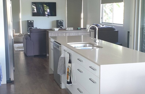 There is plenty of off-street parking on the driveway, with undercover parking for 1 vehicle or boat of any size below the deck (please be mindful that, as the deck is constructed of timber, food/drink/other items can fall through the gaps of the timber planks). There is also 2 additional outdoor settings downstairs under the deck for you to enjoy while playing a friendly game of Boche or Finska on the grass.