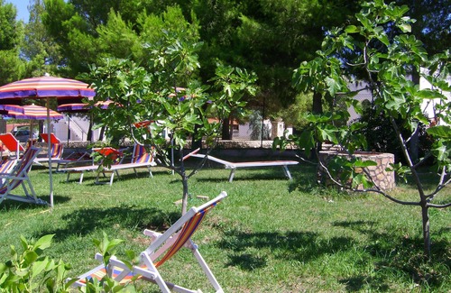 Villa Paola consists of a bedroom with large window, double bed and 2 bunk beds, in another room there is a kitchen, bathroom with shower, covered veranda with table and chairs and private garden with outdoor hot shower and barbecue. Independent entrance ideal for those who bring the dog. Parking space inside. The internal restaurant is available for excellent typical local menus with fresh fish delivered by the fisherman friend. In the morning we prepare cakes and typical pastries available for a breakfast to be consumed in the appropriate area of the internal Bar. The nearest beach, at 550 meters, is "Il Capricorno" botanical park houses native and exotic flora, along with an ancient citrus grove within a vast pine forest, there are areas with olive groves, whose centuries-old plants speak of the breath of this land of Puglia. The majestic and generous blades of prickly pear, with purple, orange or white fruits, very sweet and different in taste and aroma, are typical of the area. There are giant capers of the Gargano, with the most beautiful flowers of an orchid, very elegant, which open from the famous edible bud. The bright blue bellflowers, which cling everywhere and catch the eye, the datura from the large bell flowers, pink, yellow and white, with an intense oriental scent, and various species of jasmine, bougainvilleas with rare colors, agapant as fires, Jacaranda and Erytrina cristagalli trees, rare plants from Borneo, South America, Madagascar, Africa. The beautiful Baoinie with big fuchsia, red, white and bilobed leaves, the Choritie with barrel-shaped emerald trunks and big thorns, and beautiful pink and white flowers. The seven-hectare park is a refuge for any sedentary or walking bird species.