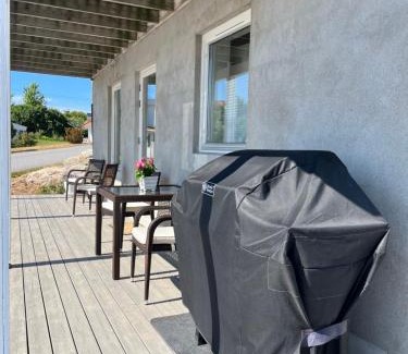 Food & DrinkTea/Coffee makerBathroomBody soap, Towels, Private bathroom, Toilet paper, Hairdryer, Shower, ToiletMedia & TechnologyTV, Streaming service (like Netflix), Flat-screen TVGeneralFire extinguisher, Ironing facilities, Trash cans, Smoke Alarm, Private entrance, Key access, Iron, Fan, HeatingKitchenElectric kettle, Coffee machine, Stovetop, Refrigerator, Kitchenware, Dishwasher, Kitchen, Toaster, Washing machine, Oven, High chair, Wine glasses, Cleaning products, Dining tableLiving AreaSitting area, SofaOutdoorsPatio, Outdoor dining area, Outdoor furniture, Terrace, BarbecueViewQuiet street view, Sea view, ViewBedroomChildrens' cribs, LinensAccessibilityEntire unit located on ground floorBuilding CharacteristicsPrivate apartment in building, DetachedRoom AmenitiesFeather pillow, Drying rack for clothing, Hypoallergenic pillow, Sofa bed, Clothes rack, Socket near the bed |