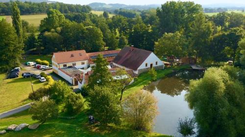 Offering garden views, Viking houses Strnadovský Mlýn in Jesenice offers accommodations, a garden, and a bar. The apartment, set in a building dating back to 2018, is 19 miles from Orlík Dam and 23 miles from Konopiště Castle. There's a sun terrace and guests can access free Wifi and free private parking. At the apartment complex, the units are fitted with a shared bathroom with a shower. Buffet and continental breakfast options with local specialities, fresh pastries, and fruit are available. Guests may eat at the on-site restaurant, which is open for dinner and lunch. Guests at the apartment will be able to enjoy activities in and around Jesenice, like skiing, cycling, and hiking. There is a playground and a kids' club that offers various activities. Hrad Zvíkov is 29 miles from Viking houses Strnadovský Mlýn, while Na Litavce is 28 miles away. Vaclav Havel Prague Airport is 50 miles from the property.