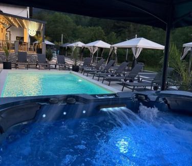 BathroomBathtub or shower, Towels, Toilet, Toilet paper, Shower, Private bathroomOutdoorsBalconyGeneralKey access, Trash cans, HeatingBedroomWalk-in closet, Wardrobe or closet, LinensMedia & TechnologyFlat-screen TV, Cable channelsLiving AreaSofa, Dining areaViewView, Mountain view, Garden viewAccessibilityUpper floors accessible by stairs onlyRoom AmenitiesSocket near the bed, Sofa bedPool and SpaHeated poolExclusive servicesAccess to private pool |