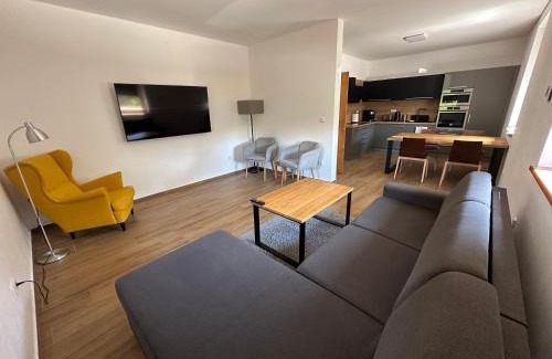 Offering a garden, Vila Kosmonautka - Velké Losiny offers accommodations in Velké Losiny. There's a private entrance at the apartment for the convenience of those who stay. There's a children's playground and guests can access free Wifi and free private parking. The apartment provides guests with a terrace, a seating area, satellite flat-screen TV, a fully equipped kitchen with a dishwasher and an oven, and a private bathroom with walk-in shower and a hair dryer. A microwave, a toaster, and fridge are also featured, as well as a coffee machine and a kettle. At the apartment complex, the units are equipped with bed linen and towels. Guests at Vila Kosmonautka - Velké Losiny will be able to enjoy activities in and around Velké Losiny, like skiing, cycling, and hiking. The apartment has a picnic area where you can spend the day outdoors. Museum of Paper Velké Losiny is a 12-minute walk from the accommodation, while Praděd is 16 miles away. Pardubice Airport is 75 miles from the property.