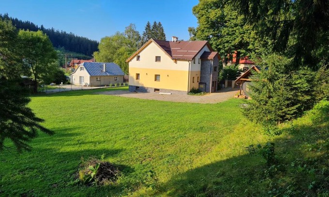Vila Pohoda - Apartmán s vonkajšou terasou a záhradou offers accommodations in Belonia, 25 miles from Lietava Castle and 26 miles from Budatin Castle. This villa features a fitness center, free bikes, as well as a garden. There's a sun terrace and guests can use free Wifi and free private parking. This villa includes 1 bedroom, a living room and a flat-screen TV, an equipped kitchen with a dining area, and 1 bathroom with a shower and a washing machine. A private entrance leads guests into the villa, where they can enjoy some wine or champagne and chocolates or cookies. This villa is non-smoking and soundproof. You can play table tennis and darts at the villa, and the area is popular for hiking and walking tours. Skiing and cycling can be enjoyed nearby, while a ski equipment rental service and ski storage space are also available on-site. Prosper Golf Resort Čeladná is 29 miles from Vila Pohoda - Apartmán s vonkajšou terasou a záhradou.