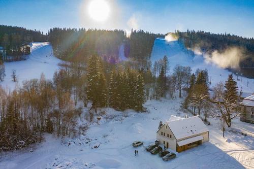 Featuring garden views, Vila Rasola in Malá Morávka offers accommodations, a garden, and barbecue facilities. This property offers access to a patio and free private parking. The accommodation features a sauna, free Wifi throughout the property, and family rooms. The apartment provides guests with a terrace, mountain views, a seating area, satellite flat-screen TV, a fully equipped kitchen with a dishwasher and an oven, and a private bathroom with walk-in shower. A microwave, a toaster, and fridge are also available, as well as a coffee machine and a kettle. At the apartment complex, every unit is fitted with bed linen and towels. There is a coffee shop, bar, and lounge. For guests with children, Vila Rasola provides an indoor play area, outdoor play equipment, and a baby safety gate. Skiing and fishing can be enjoyed nearby, while a ski equipment rental service, ski-to-door access and a ski pass sales point, are also available on-site. Praděd is 10 miles from the accommodation, while Museum of Paper Velké Losiny is 28 miles from the property. Ostrava Leos Janacek Airport is 56 miles away.