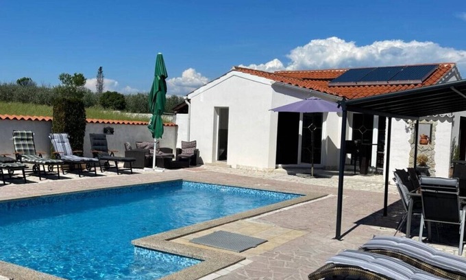 The villa in Pula has 10 bedrooms and has capacity for 22 people. The villa is nice, is very light, and is 400 m². It has views of the garden and the swimming pool. The property is located 2 km from Pula airport, 2 km from Pula supermarket, 7 km from Pula city, 14 km from Medulin sand beach. The house is situated in a quiet neighborhood in a beautiful rural area. The accommodation is equipped with the following items: garden, garden furniture, fenced garden, terrace, washing machine, barbecue, fireplace, iron, internet (Wi-Fi), hair dryer, sauna, hot tub, spa, air-conditioned, private swimming pool, open-air parking the same building, 1 TV, satellite tv. In the hotplate of glass ceramics open plan kitchen, refrigerator, microwave, oven, freezer, dishwasher, dishes/cutlery, kitchen utensils, coffee machine and toaster are provided.