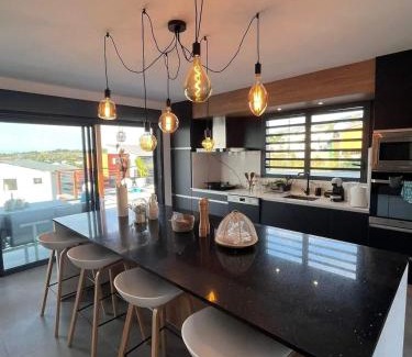 Villa élégante avec piscine privée à Saint Paul + Vue sur la mer is located in Saint-Paul, just 14 miles from Botanical Gardens Mascarin and 17 miles from Le Maïdo. A 2-minute walk from Plage de Saint-Paul and 12 miles from The House of Coco, the property provides a garden and a terrace. There's a year-round outdoor pool and guests can use free Wifi and free private parking. The air-conditioned villa also features a TV, a fully equipped kitchen with a dishwasher, a seating area, washing machine, and 3 bathrooms with a shower. For added privacy, the accommodation features a private entrance. Stella Matutina Museum is 19 miles from the villa. Roland Garros Airport is 22 miles from the property.