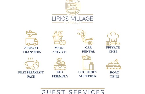 @Lirios Village Marbella, we offer a wide range of tailor-made services to ensure your stay is as comfortable and enjoyable as possible. We can arrange your airport transfers, include daily maid service, arrange groceries shopping, welcome surprise decoration, boat trips, and more. Maid service is included in high-season direct bookings, and it can be added to any other booking. We also offer airport transfers and private chef services.