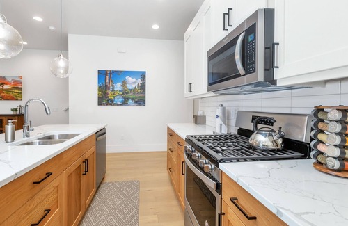 You will enjoy cooking and entertaining in this luxury kitchen. Featuring Stainless steel appliances and a side-by-side refrigerator, dishwasher, microwave, oven, and separate gas stovetop. The kitchen is fully stocked with a coffee pot, crockpot, blender, pancake grill, toaster, and mixing bowls to enjoy baking. The kitchen area will seat 6 at the table and 4 additional guests at the bar. The living room has a comfortable couch and two chairs, and a large flat-screen TV. Also featuring the loft area with a couch, TV, and game table.