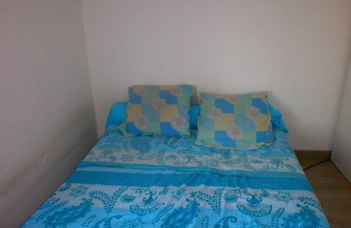 Bedroom 1 with 140x190 bed with sheet and storage.