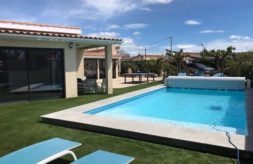 Here, it is the holidays feet in the water ... Privileged location: beautiful modern house with heated swimming pool and 80 m from the Belle Bleue and the sandy beach.
