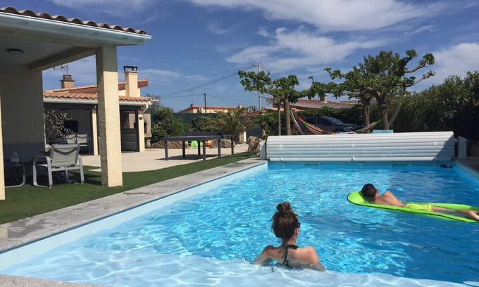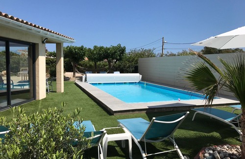 BEAUTIFUL VILLA WITH HEATED POOL (from April to October) AND ITS UNDERWATER BEACH ON 700 M2 CLOSED AND FENCED LAND, 80 M BEACH, SHOPS NEARBY. FROM 2 TO 10 PEOPLE