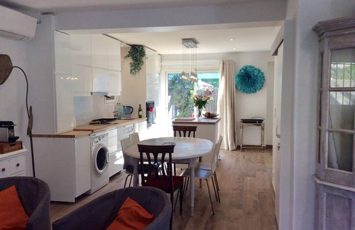 A two minute walk from the historic village, rental in a charming Provencal house in a quiet residential area with parking and garden. Very bright house completely renovated this year combining comfort and