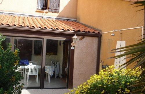 the terrace with shower for the returns of beach, garden furniture, lighting, barbecue, the garden is closed by a gate since you are in pedestrian zone, no road to cross! to get to the beach (250 m)
