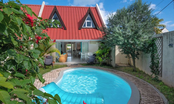 Want to relax and recharge in the sun, with family or friends? The "Three Suns" villa welcomes you! A cozy house in Bainboeuf on the northern tourist coast of the island, 200m from the beach, at the exit of Pereybere beach, a few minutes from the fishing village of Cap Malheureux and Grand Baie, the most touristy seaside resort on the island. Close to the tourist center (restaurants, activities, shops) in a residential area, our house is quiet, secure (home alarm and residence cameras), and very close to the beaches (just a street to cross). With 3 air-conditioned bedrooms, it can accommodate up to 6 people: 1 double bed 160, 1 double bed 180, and a room with 2 beds 90 that can be separated or pushed together for a double bed. 2 bathrooms, 2 separate toilets, large equipped kitchen. It is equipped to live comfortably both as couples and as a family (washing machine, dishwasher, refrigerator-freezer, gas stove, oven, microwave, electric coffee maker).The furnished terrace overlooking the private pool is a very pleasant living space - outdoor pool shower and private garden with sun loungers, TV + Wi-Fi. For your meals, you can opt for "homemade" - see equipped kitchen - and for charcoal grill enthusiasts, BBQ available. There are also many multicultural restaurants for all budgets in Grand Baie and Pereybere. In terms of location: Bainboeuf beach (3 minutes on foot) offers a beautiful view of the Northern islands and access to a multitude of coves and turquoise waters from the beach. For those tempted by diving or snorkeling: we recommend the diving club at the end of the street which offers you the chance to explore the underwater world and lagoon, safely. Close to major roadways. For those hesitant to drive on the left, taxis are 500m away and, more locally, there is a bus nearby. Concierge service on-site to welcome you, and of course all our tips and addresses if you need them.
