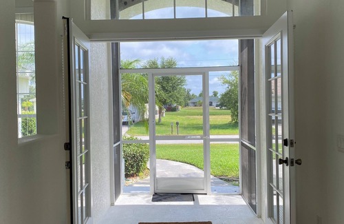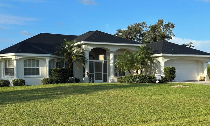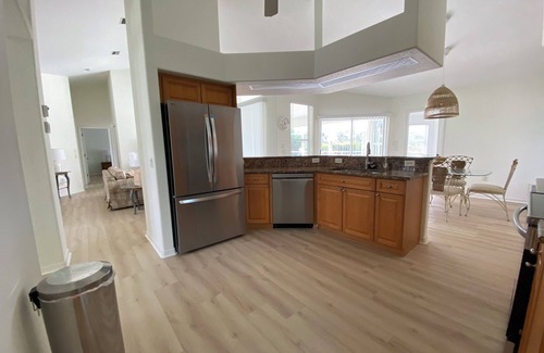 Welcome to your home away from home! The spacious, airy home sits on a double lot with pool and deck area facing south over a small pond and the White Marsh golf course in the Rotonda West community. The open plan living space has cathedral ceiling and fully integrated living, dining and kitchen areas. The home has 4 bedrooms, 4 bathrooms, a 2-car garage, swimming pool and hot tub for your enjoyment. The home boasts two master bedrooms with king beds, en-suite bathrooms and access to the pool/lanai area. The other two bedrooms have 2 twin beds with a shared bathroom. Additionally there is a pool bath with walk-in shower. There is a kitchen and dinning area with updated stainless steel appliances. New washer and dryer. For those of you who can’t leave work behind, there is a home office as well. Open the 3 panel sliding glass doors for a panoramic view of the pool which overlooks a pond. All linens, bath/pool towels provided. There is also a gas barbecue.