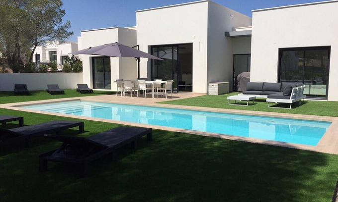 The villa has 3 bedrooms and 2 bathrooms. The accommodation offers privacy, a wonderful lawned garden with trees and a beautiful heated pool. Its comfort and the vicinity of places to shop, sports activities and places to go out make this a perfect luxury villa to spend your holidays in Spain with family or friends and even your pets.