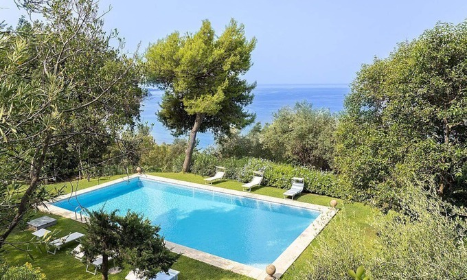 Villa Acquazzurra is a spacious two-story villa in a quiet position, located on a hillside above the sea. It sleeps ten people. From Villa Acquazzurra you will enjoy a wonderful view of the sea and of the greenery. Villa Acquazzurra is 300 square meters (3230 square feet). It features a private swimming pool, panoramic private terraces, a private patio, air conditioning (please read description below to check in which rooms the units are installed), winter heating and WI-FI Internet access.