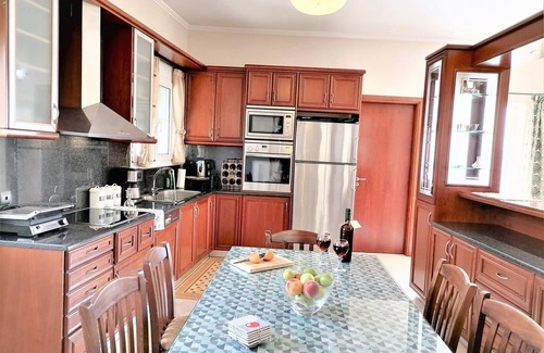 The kitchen is fully equipped with dishwasher, coffee machine, toaster, kettle, pots, dishes etc. In the kitchen there is also a second table ideal for 6 people.