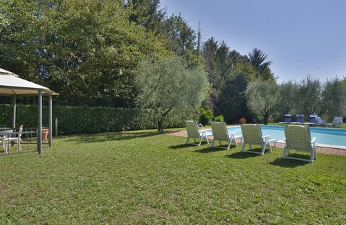 Villa Alida is a beautiful villa, fruit of the restoration of two farmhouses on the splendid hill’s of Lucca. The property is surrounded by a wide green parkland with a natural fence, a mixture of forests, olives groves and a little garden lake. Among beautiful flowerbeds and green hedges there is the large swimming pool. The furnishings of this house represents the perfect alchemy between antique and modern which makes vacations more pleasant. The villa has notable tranquillity and a breathtaking landscape as one of the outstanding features of this property.