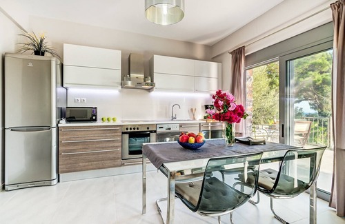 House / Villa, direct sea view, sleeps 4, 2 bedrooms, private pool, air-conditioning, all comforts. The villa is on a plot of 2000m2 full of olive trees and pines.