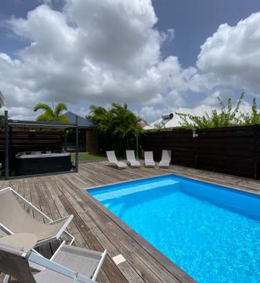 Providing a shared lounge, VILLA ALOEREVE features accommodations in Sainte-Anne. This property offers a private pool, free Wifi, and free private parking. Guests have access to a hot tub, solarium, and open-air bath. Featuring a terrace and pool views, the spacious villa includes 4 bedrooms, a living room, satellite flat-screen TV, an equipped kitchen, and 3 bathrooms with a walk-in shower and a hot tub. Towels and bed linen are available in the villa. For added privacy, the accommodation has a private entrance and soundproofing. During warmer months, you can make use of the barbecue facilities and eat on the private patio. A water park can be found at the villa, along with a garden. Pointe-à-Pitre Le Raizet Airport is 17 miles from the property.
