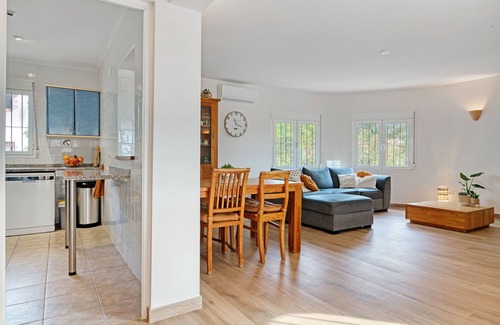 Located in Moraira - Teulada, the villa "Aloha Amor" offers guests fantastic views of the golden valley and the Mediterranean Sea. A lovely family villa at walking distance from the beach and village center, with very spacious private outdoor area, large private swimming pool and a completely renovated indoor area. The villa has 2 floors. The upper part consists of a living room, a fully-equipped kitchen, 3 bedrooms with air-conditioning, 2 bathrooms and a separate toilet. The lower part consists of a living room with a comfortable sofa bed, 1 bedroom, 1 bathroom, air-conditioning and a fully equipped kitchen. The villa can accommodate 10 people in total. On-site amenities include high-speed Wi-Fi (also on the terraces), two smart TV’s with streaming services, air conditioning, a washing machine, a dishwasher, and a selection of children's books and toys. A trampoline, table tennis table and dartboard are also available on the premises.