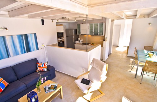 The bright living room (TV Satellite, WiFi internet connection,...) and the dining room with large openings are invitation to calm and relax. Fully equipped kitchen.