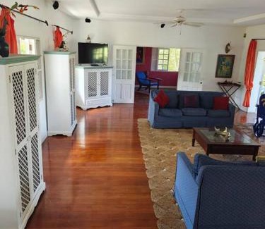 Villa Ananda Tobago offers accommodations in Patience Hill, 1.5 miles from Plymouth Beach. This property offers access to a terrace, free private parking, and free Wifi. The air-conditioned villa consists of 6 bedrooms, a living room, a fully equipped kitchen with a dishwasher and a coffee machine, and 6 bathrooms with a bath and free toiletries. Guests can take in the views of the sea from the balcony, which also has outdoor furniture. The accommodation is non-smoking. A.N.R. Robinson International Airport is 6.2 miles away.