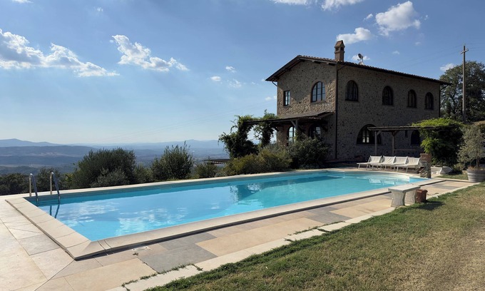 Villa and pool, next to typical Tuscan vineyards and olive groves, breathtaking sunsets | Villa in Toscana