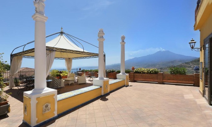 In a panoramic location above Taormina, the family-run Villa Angela offers great views of Mount Etna and Naxos Bay. It features a swimming pool, uniquely styled rooms and free parking. With free Wi-Fi, rooms at Villa Angela include a private balcony, air conditioning and satellite TV. The private bathroom includes free toiletries and a hairdryer. At this boutique hotel, you can start your day with a buffet breakfast out on the terrace overlooking the Ionian Sea. The on-site restaurant specializes in typical Sicilian dishes. A transportation service is available to a partner beach where you can enjoy special rates. The friendly staff can organize trips to Mount Etna, Siracusa, and many other destinations. The property is a 20 minute walk from the picturesque hilltop village of Castelmola, famous for its almond wine. The historic center of Taormina is a half a mile away.
