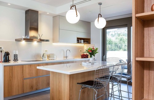 Outdoors, the villa will take your breath away. Olive trees, grapes, and orange trees give you a sense of relaxation near nature. Relax in the infinity swimming pool of 80m2 while your children play safely in the children's pool which is 37sqm. Cook your meal by preparing it with organic products that you collected from the garden and enjoying it on the dining table. The outdoor living areas offer you romantic moments day and night. The villa has secure parking suitable for 5-6 vehicles.