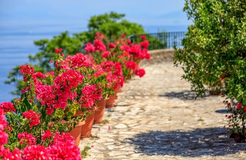 If you don't like the hot summer weather, villa Aphrodite is an excellent choice for all seasons. Come and see the spring flowers, or the fabulous autumn nature. Also, a must-see is the famous traditional 'Corfu Easter': The brass bands of the island will amaze you parading through the historical town center, playing classic music.